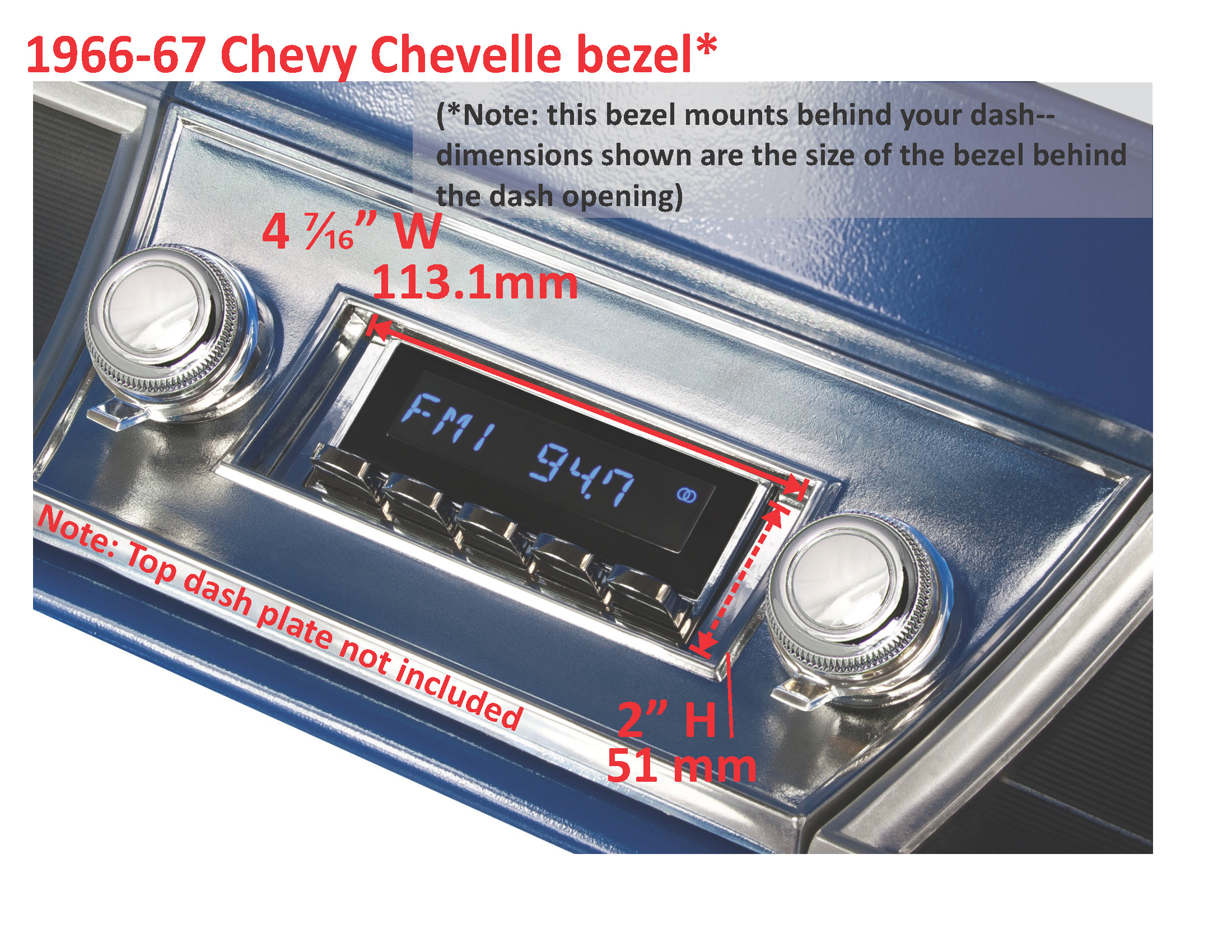 1966-67 Chevelle fascia. Specifically manufactured to suit RetroSound radios. Click 'More-Info' for fascia dimensions.